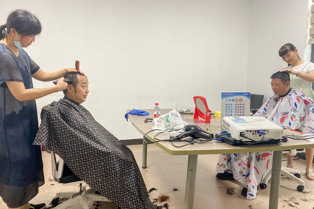 6月18日中午,公司邀請(qǐng)的兩位理發(fā)師來到了活動(dòng)地點(diǎn),貼心地詢問這些父親們對(duì)自己發(fā)型的要求,憑借嫻熟的技藝,為他們修剪出了滿意的發(fā)型。沒有花哨時(shí)尚的造型,理發(fā)師卻“剪”出了大家的笑容,同時(shí)也“剪”出了中達(dá)新材對(duì)員工們深切的關(guān)愛。