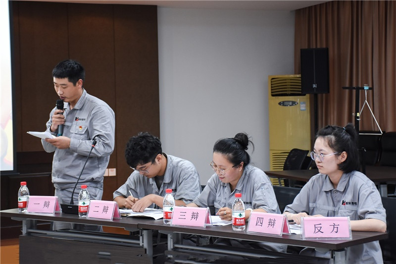 本次辯論賽有中達(dá)新材隊(duì),集團(tuán)本部隊(duì),中達(dá)國際隊(duì),恒洋熱電隊(duì),美克斯機(jī)械隊(duì),中達(dá)建設(shè)、材料合作隊(duì)六組隊(duì)伍參加。擔(dān)任本次辯論賽評委的有中達(dá)新材黨支部書記、總經(jīng)理吳利陽,中達(dá)新材總經(jīng)理助理徐姚松,中達(dá)集團(tuán)團(tuán)委書記、董事長秘書、宣傳部主任董飛,中達(dá)集團(tuán)婦聯(lián)副主席、人力資源部主任吳雪艷,派利公司顧問陳志華。比賽共有4個(gè)辯題,兩兩PK,最后得分最高的兩組進(jìn)行決賽,評委們根據(jù)規(guī)則和標(biāo)準(zhǔn)進(jìn)行打分,最終選出最佳團(tuán)隊(duì)和最佳辯論手。