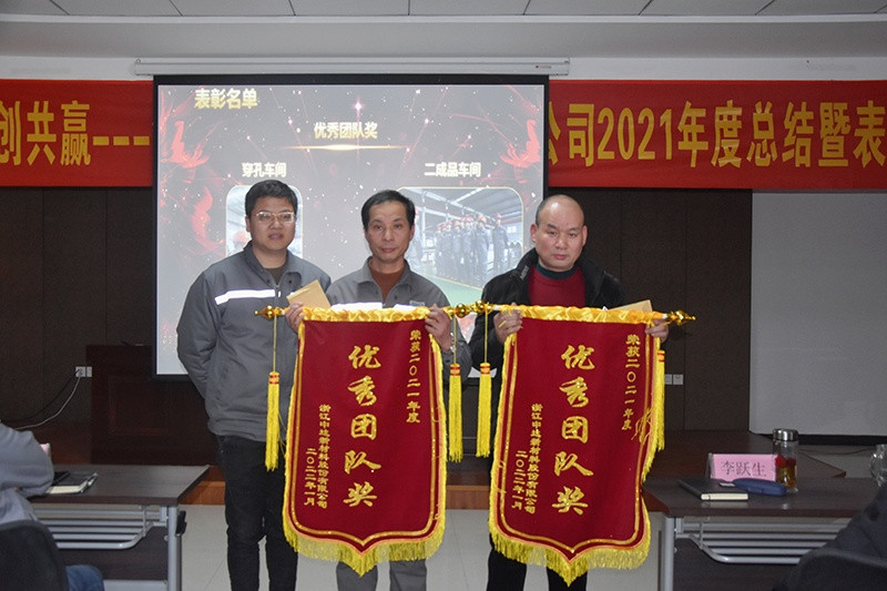 2021年的成績(jī)離不開中達(dá)新材各部門、各崗位員工的辛勤付出。在頒獎(jiǎng)儀式上,領(lǐng)導(dǎo)為優(yōu)秀團(tuán)隊(duì)、優(yōu)秀班組、質(zhì)量之星、銷售之星、專業(yè)能手等頒發(fā)了錦旗和榮譽(yù)證書。