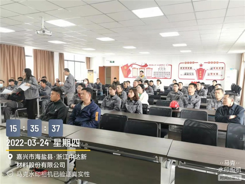 為切實提高新入職員工安全意識,普及安全知識,掌握安全技能,增強自我保護(hù)能力,避免安全事故的發(fā)生,3月25日,中達(dá)新材對近期新入職員工進(jìn)行了集中式安全教育培訓(xùn),共有54名員工參與培訓(xùn)。