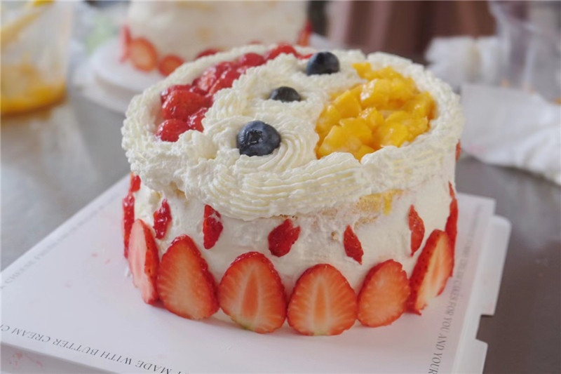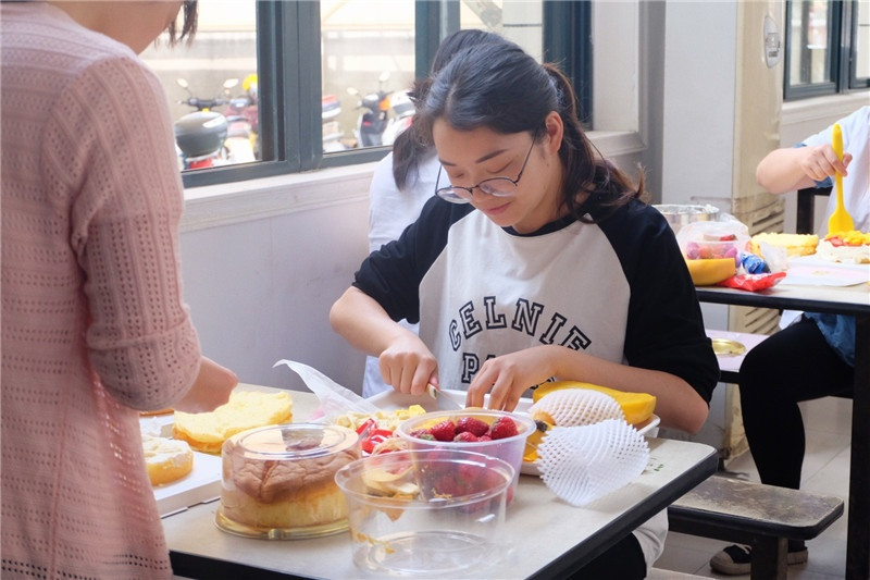 活動(dòng)開(kāi)始前,工作人員細(xì)心地準(zhǔn)備好制作的材料:水果、工具、包裝等。懷著激動(dòng)的心情,大家早早地來(lái)到了現(xiàn)場(chǎng)分工合作,有人切水果、有人打奶油、有人分割蛋糕胚,忙得不亦樂(lè)乎。所有材料準(zhǔn)備齊全后,大家開(kāi)始用心地整合自己的蛋糕,加點(diǎn)自己喜歡的水果,在蛋糕胚表面鋪上奶油。作為新手的大家,雖然有些手忙腳亂,但是利用水果與奶油的巧妙搭配,竟也顯得相得益彰。在制作的過(guò)程中大家紛紛結(jié)合了自己的想法、滿懷對(duì)母親的愛(ài),完成了一個(gè)個(gè)充滿祝福的蛋糕。