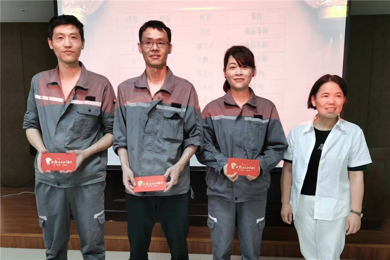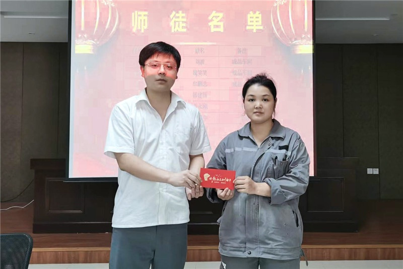 6月21日,中達(dá)新材工會為第一批達(dá)成“師徒協(xié)議”的師徒頒發(fā)了獎勵。中達(dá)新材副總經(jīng)理徐姚松、吳月琴,以及各車間主任、班組長共同見證。