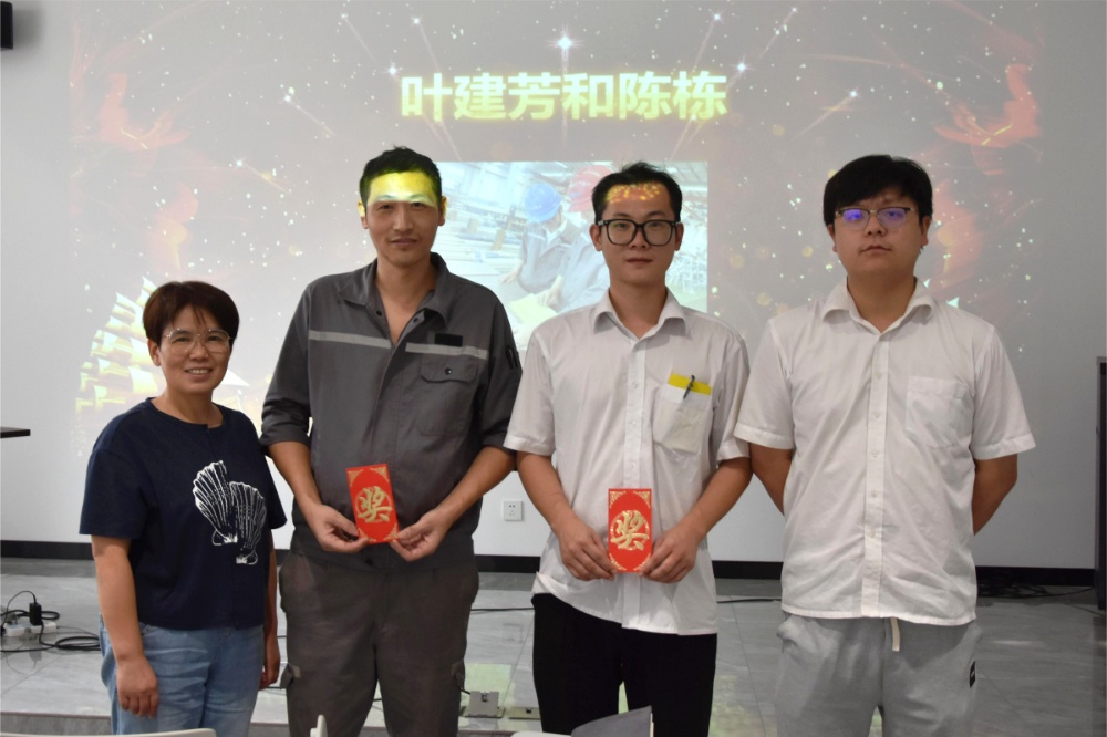 本次頒獎(jiǎng)儀式師父獎(jiǎng)勵(lì)由吳月琴吳總頒發(fā),徒弟獎(jiǎng)勵(lì)則分別由二車間主任干永明、一成品車間主任何張浩頒發(fā)。